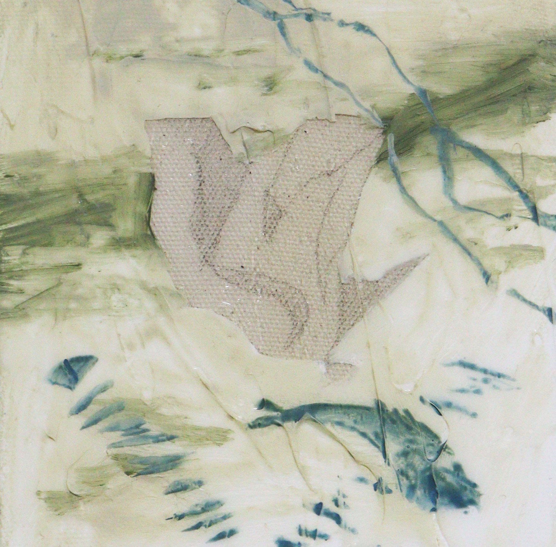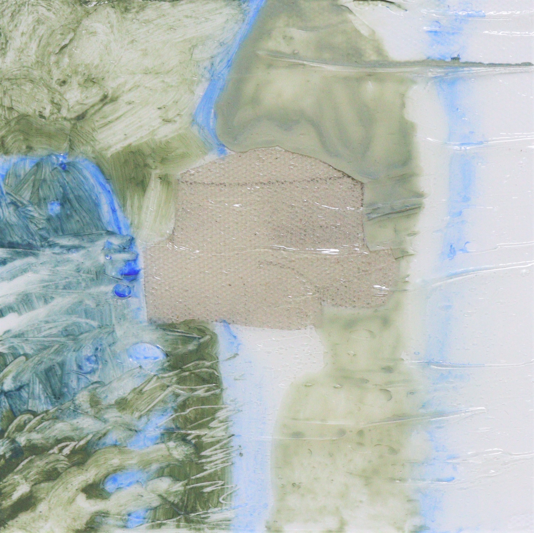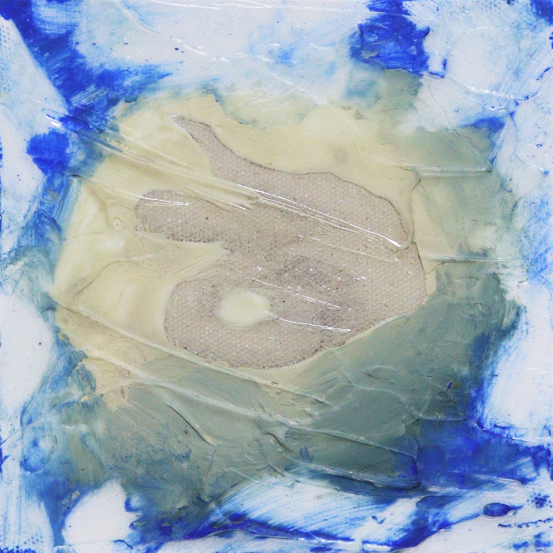 <물, 하늘, 모래더미>, 2021, 캔버스에 아크릴, 연필, 16 x 16 cm
